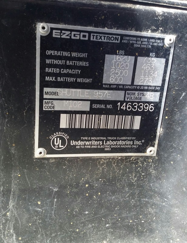 Description: 1 each Textron EZ-GO shuttle 957 golf cart with charger.