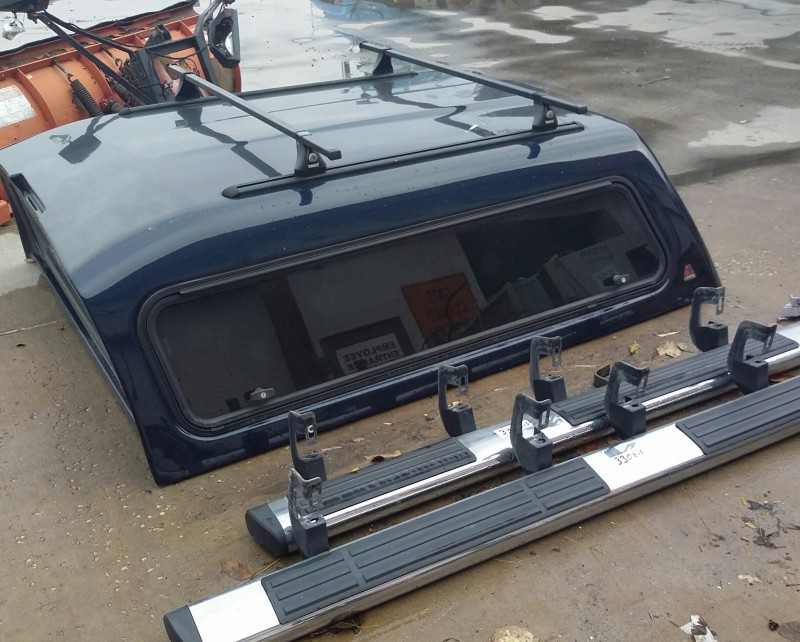 Description: 1 each Leer truck topper model 65GSO and running boards that fit 2007-2013 Chevy Siverado regular & extended cab short bed.