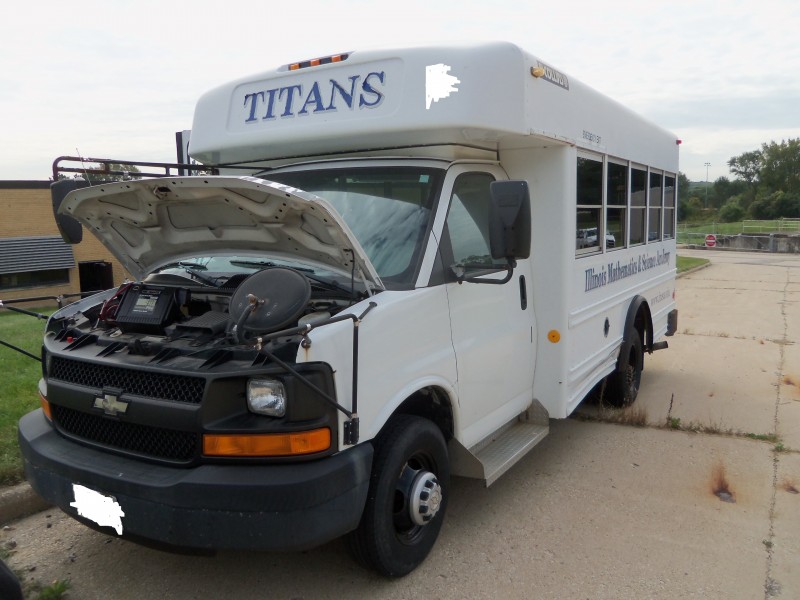 2005 Chevrolet EXpress 3500 Van, 2WD 8 Cylinders, last known mileage 130,442, has a 6.0 liter,V-8 engine,15 passenger shuttle bus, starts with a jump and drives. Front and rear heat, A/C, AM/FM cassette, delay wipers, additional replacements or major repairs are unknown and may or may not be needed. May or may not need to be towed of site. May or may not have a battery. Scratches, dents, and rust may or may not be present. Normal dents, dings and scratches as consistent with vehicle age, mileage and use. Decal and sticker remants may or may not remain on paint. Rust may or may not appears on several areas around the vehicle. May or may not have undercarriage rust damage. Other small paint flaking and some surface rust may or may not be present.