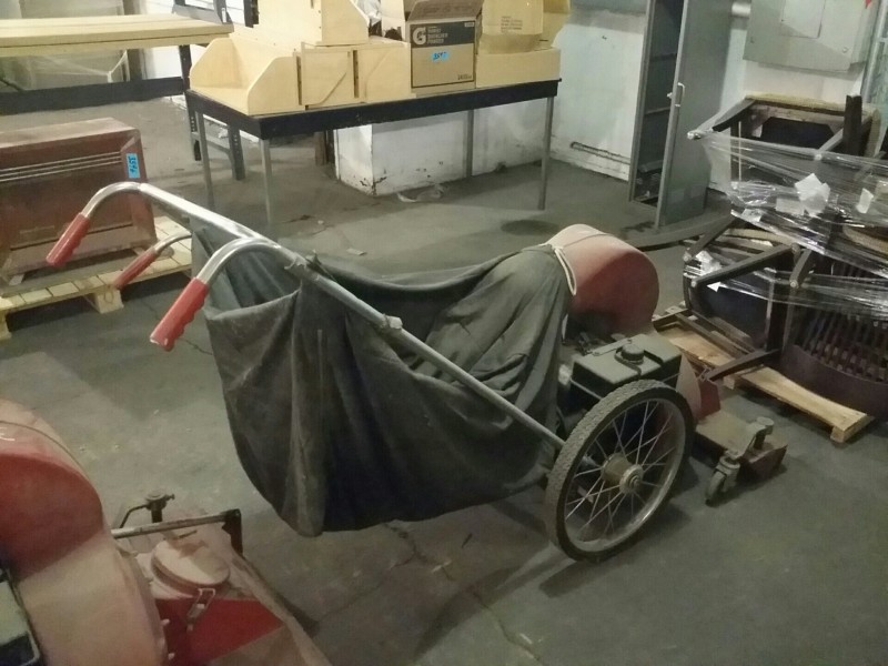 Description: 1 each Clarke all purpose outside parking lot vacuum. Motor spins free, not locked up.