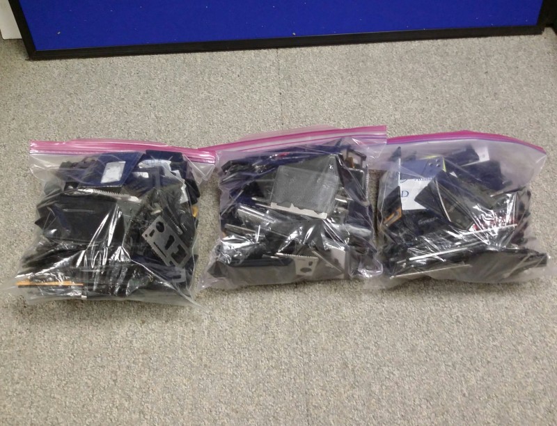 Description: Lot consisting of 3 each gallon size ziploc bags of credit card knives and wallet multi-tools.
