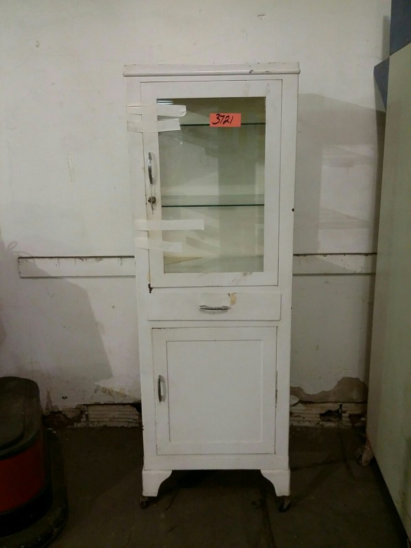 Description: 1 each vintage metal cabinet on wheels.