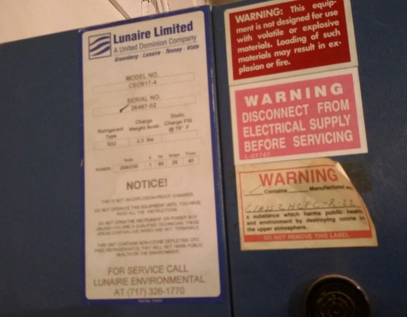 Description: 1 each Lunaire model CEO917-4 enviornmental stability temperature humidity chamber.