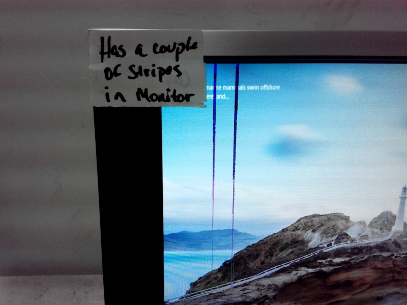 Description: HP LA2405x 24" flat monitor - 1 each. The monitor has 2 stripes in picture. See pictures. Power and monitor cables will be provided upon request.
