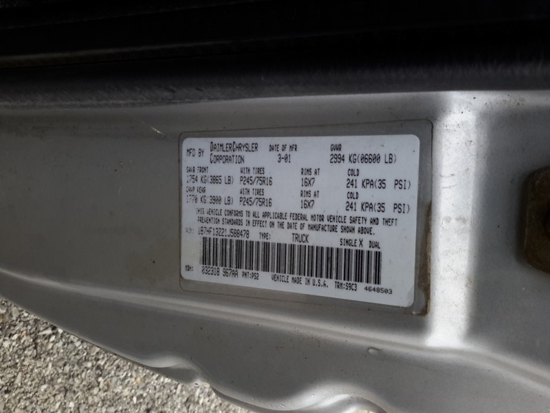 33816 - 2001 Dodge RAM 1500 1/2 ton 4WD 8 Cylinders Z 5.9L FI OHV Mileage 202,602