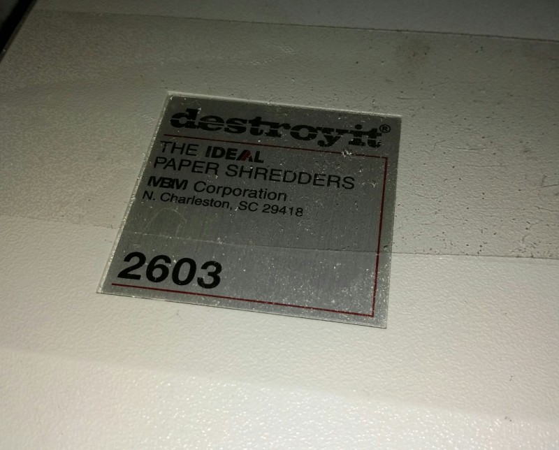 Description: 1 each destroy it The Ideal paper shredder model 2603.