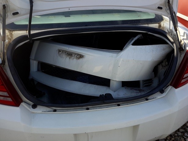 Body : (White) Poor condition: front end damage, no front bumper ( bumper in the trunk with possible damage).
