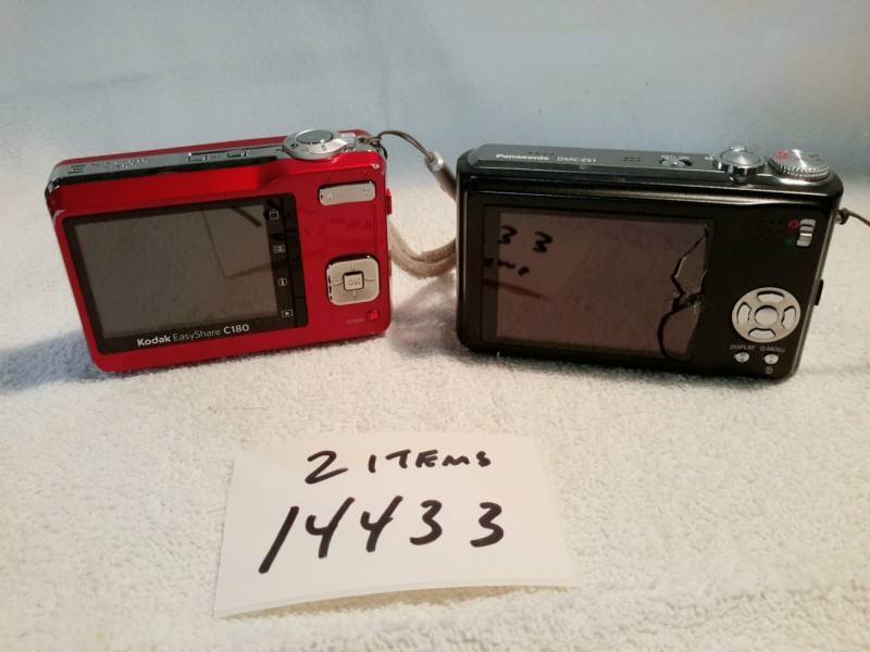 Description: Kodak EasyShare C180 10.2MP Digital Camera with 3x Optical Zoom and 2.4 inch LCD - Red and Panasonic Lumix DMC-ZS1 10MP Digital Camera with 12x Wide Angle MEGA Optical Image Stabilized Zoom and 2.7 inch LCD (Black) - 2 each