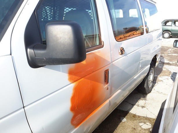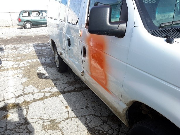 Body : (White) Poor condition:  Side door and back door damage/dents