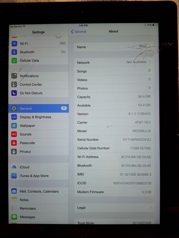 *unlock code all zeros (if applicable)