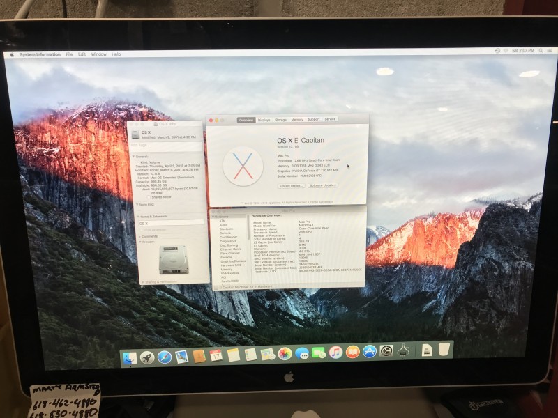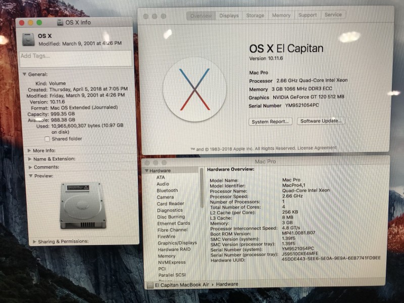 Description: Apple Mac Pro Quad Core 2.66 MB871LL/A-A1289 (2009) - 1TB HD / 3GB RAM / MAC OSX Sierra 10.11.6 - 1 each