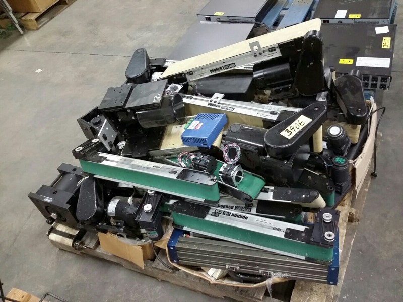 Description: 1 each pallet consisting of Dorner 2100 Series conveyor belts and a box of miscellaneous parts.