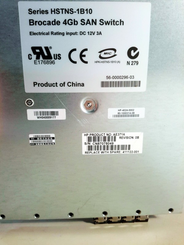 Description: HP AE372A HSTNS-1B10 Brocade 4Gb San Switch 411121-001 - 1 each