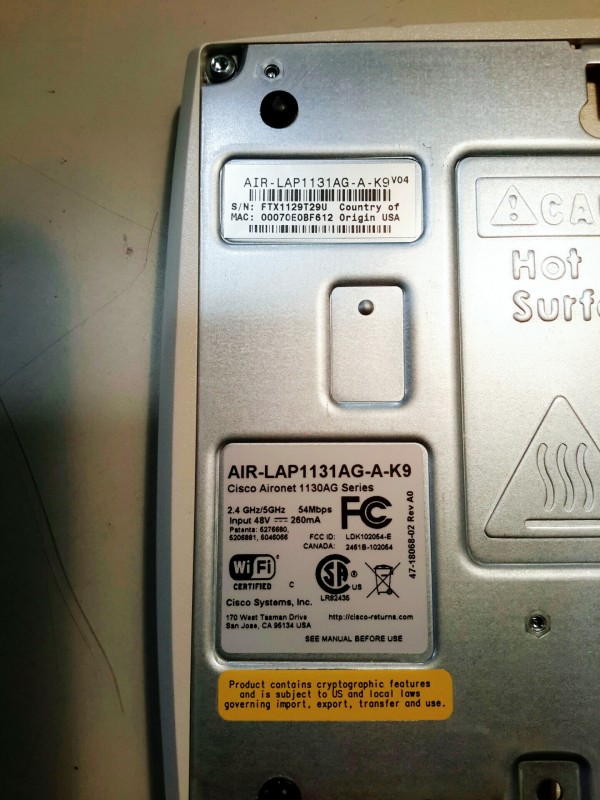 Description: Cisco AIR-LAP1131AG-A-K9 Aironet 1131AG Wireless Access Point - 1 each