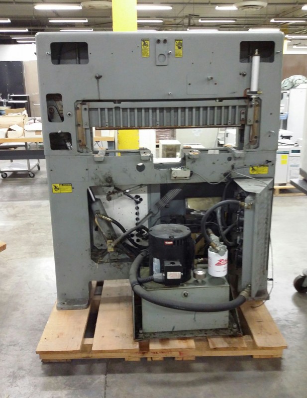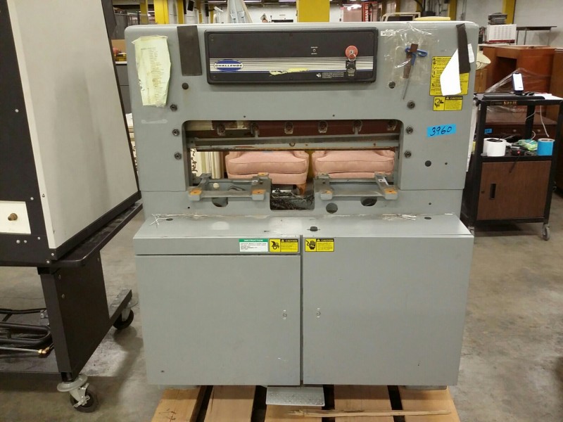 Description: 1 each Challenge paper cutter model MC. This unit consists of 2 each pallets, 1 each with parts to the main unit.