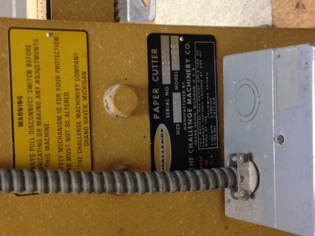 Description: 1 each Challenge paper cutter. The location of this unit is 527 East Capitol Avenue in Springfield, IL. This unit is operational, but it is leaking hydraulic fluid and will need the seals replaced. Additional information and for viewing appointments please use the contact below. They do have equipment on-site to assist with loading.