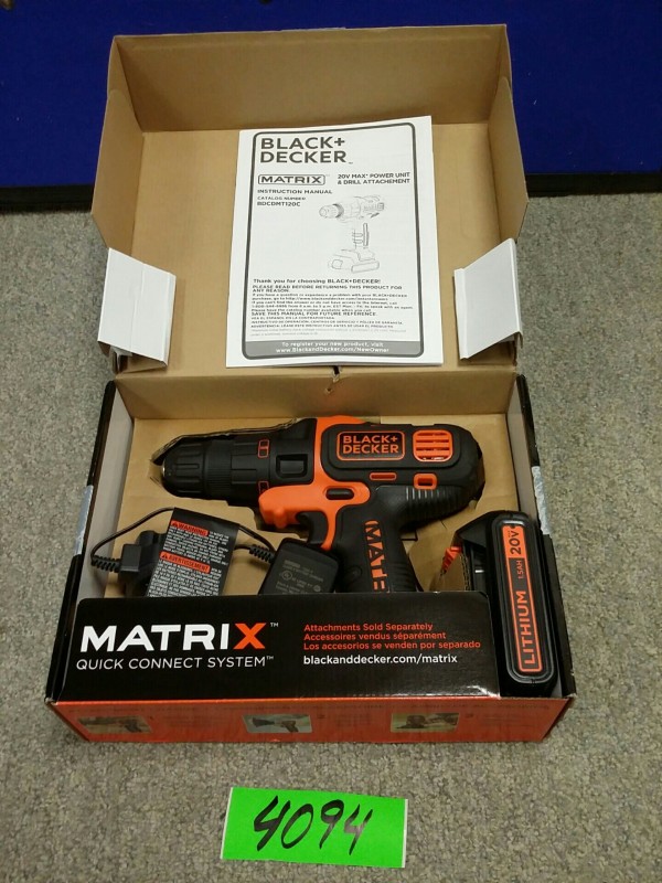 Description: 1 each new in box Black & Decker 20v cordless drill.