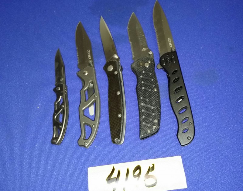Description: Lot consisting of 5 each miscellaneous Gerber pocket knives.