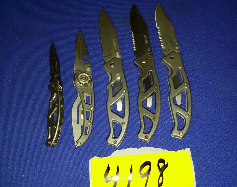 Description: Lot consisting of 5 each miscellaneous Gerber pocket knives.