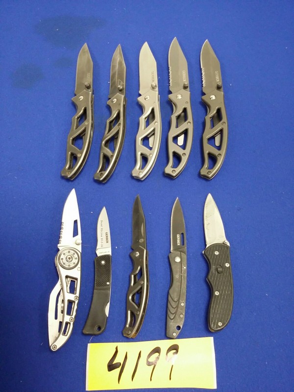 Description: Lot consisting of 10 each miscellaneous Gerber pocket knives.