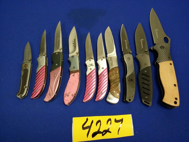 Description: Lot consisting of 10 each miscellaneous Browning pocket knives.
