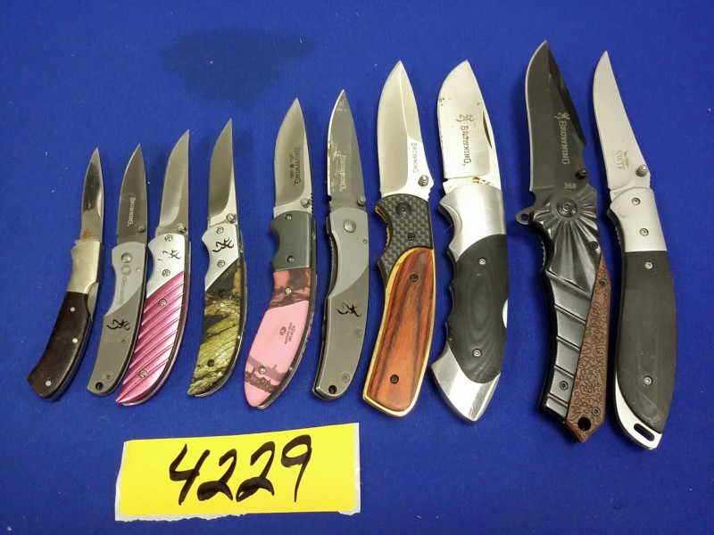 Description: Lot consisting of 10 each miscellaneous Browning pocket knives.