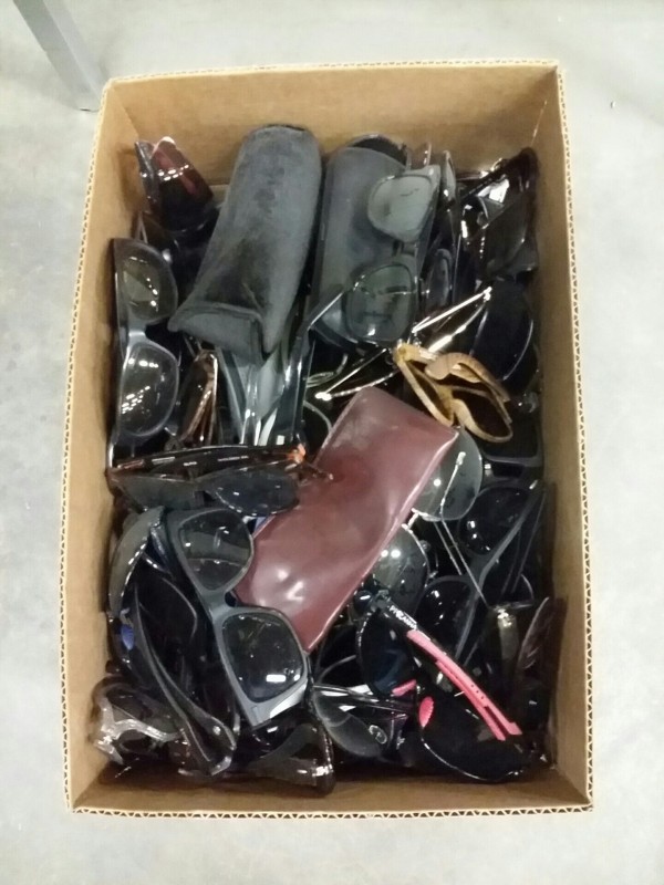 Description: 1 each box consisting of men's and women's sunglasses. The box will have both regular, prescription sunglasses, and cases.