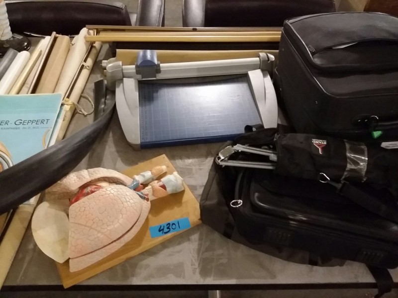 Description: 1 each table lot consisting of miscellaneous items. The table isn't included in this lot.