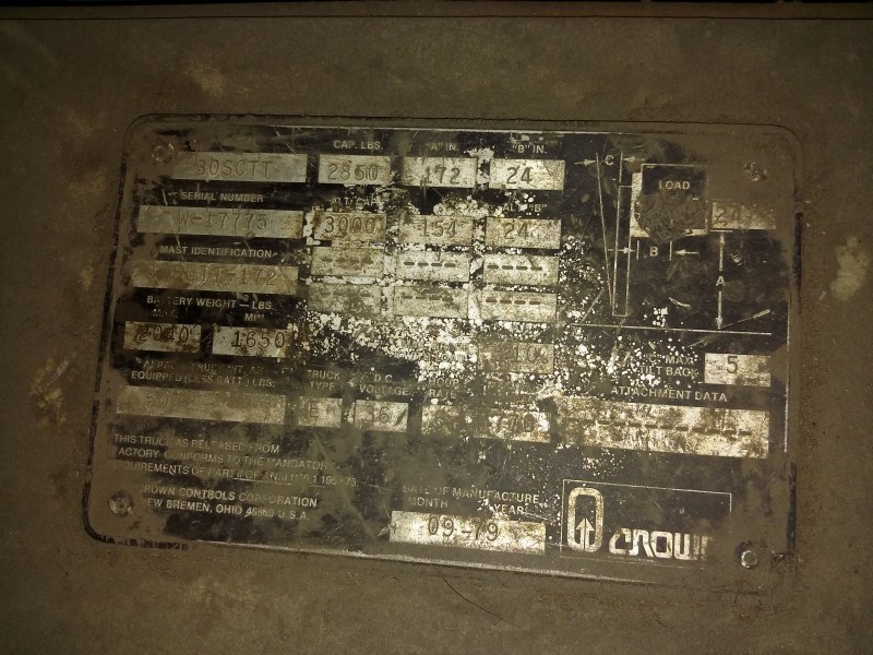 Description: 1 each Crown model 30SCTT electric forklift. This unit was retired without any known history.