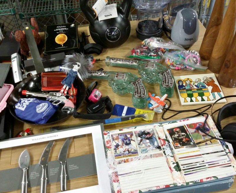 Description: 1 each table lot consisting of miscellaneous items. The table isn't included in this lot.
