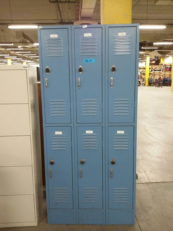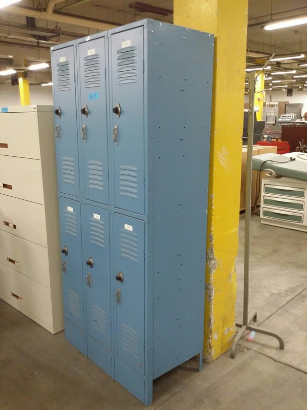 Description: 1 each six bay locker cabinet. No key and/or combination to the locks available. All locks are locked at this time.