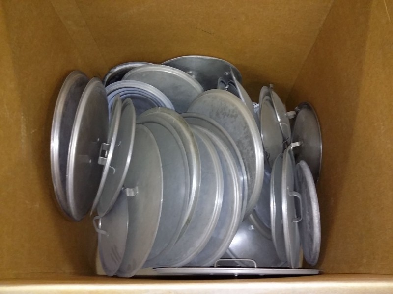 Description: 1 each box consisting of miscellaneous size cooking pot lids.