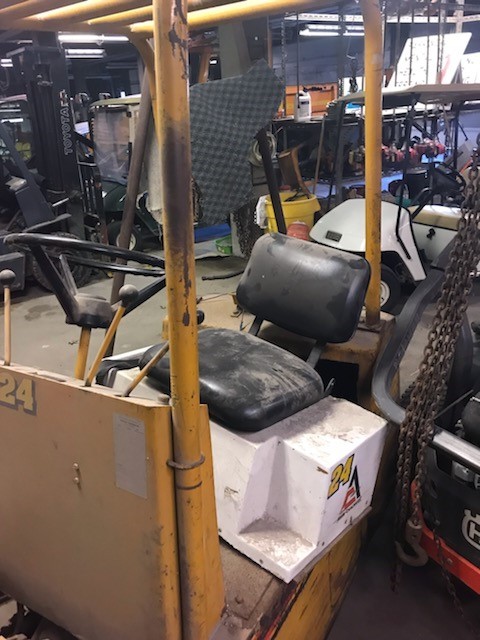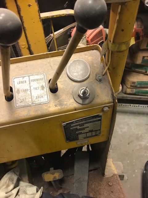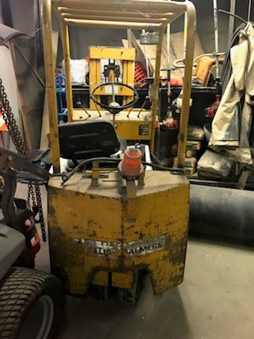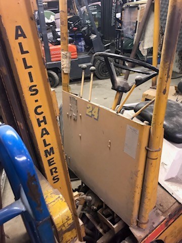 Description: 1 each Allis Chalmers forklift. Unit hasn't been operable for over 2 years. It is missing a fuel tank line, battery, and tire.