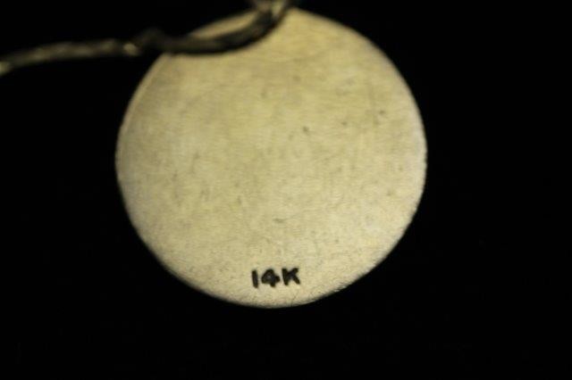 Thank you for bringing this to our attention. Looks like the description got cut off. The last 2 necklaces pictured should have the following description: 14k gold necklace with pendant 2.8g, 14k gold necklace with locket 1.2g. If you have any more questions please don't hesitant to ask.