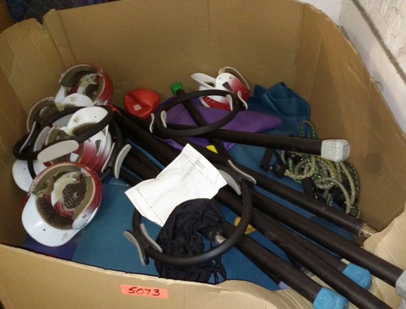 Description: 1 each big box consisting of miscellaneous sports and workout equipment.