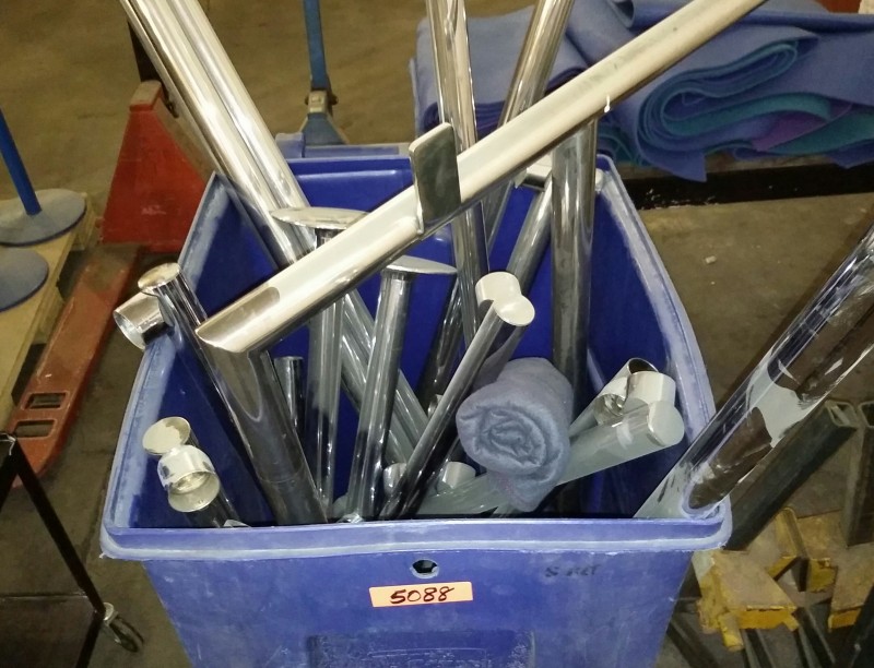 Description: 1 each waste can with chrome railing.