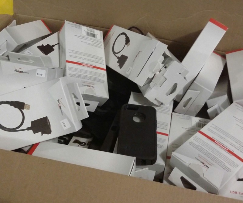 Description: Lot consisting of miscellaneous items including - computer monitor stands, computer speakers, usb cable extensions, Otter box phone cases, and other.