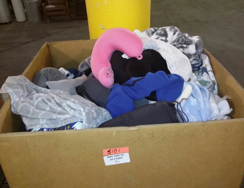 Description: 1 each big box full of neck pillows, pillows, and blankets. Box not included with this auction, contents will need to be removed by the winning bidder.