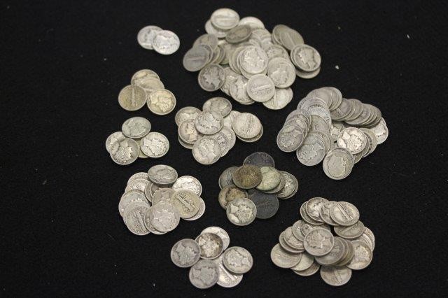 176 MERCURY DIMES;1916,1916S,1917,1920,1924,1927,1929,1934, AND 168 COMMON MIXED DATES AND ROOSEVELT DIMES:1954D,1963