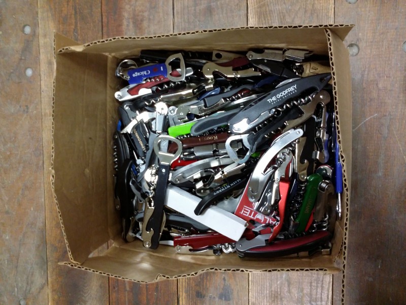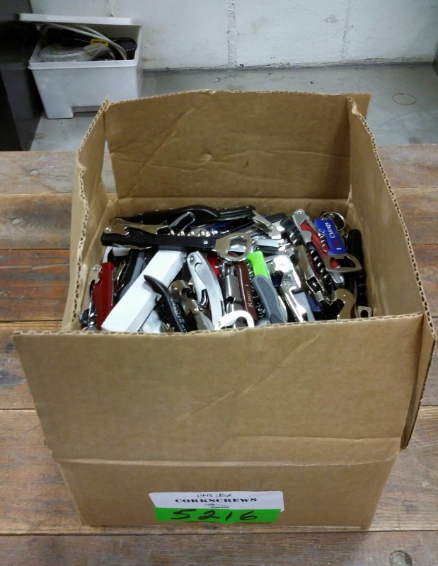Description: 1 each box consisting of miscellaneous corkscrew/bottle openers.