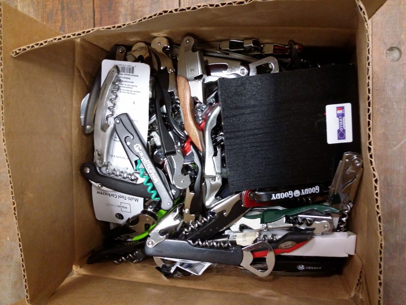 Description: 1 each box consisting of miscellaneous corkscrew/bottle openers.