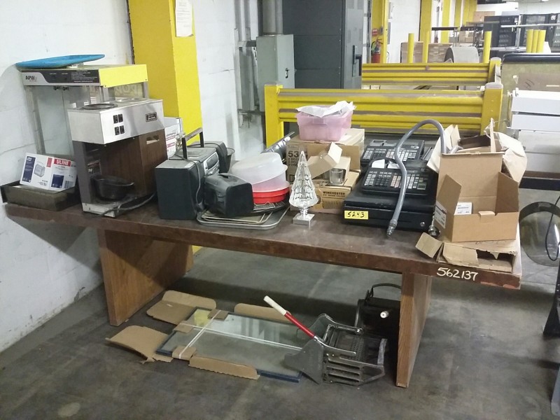 Description: 1 each table lot consisting of miscellaneous items. The table isn't included in this lot.