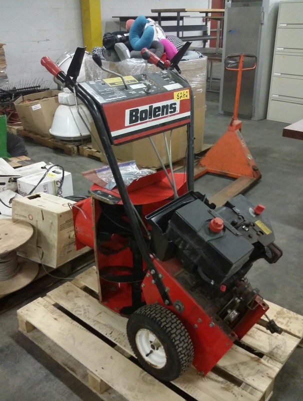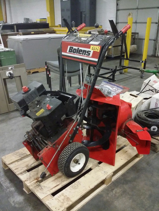 Description: 1 each Bolens snowblower. This unit has some parts removed, motor spins free not locked up.
