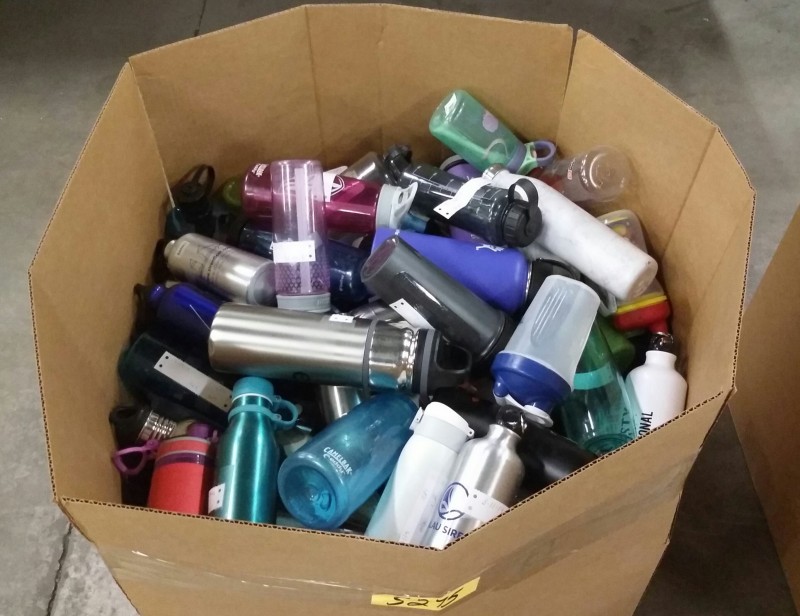 Description: 1 each box consisting of miscellaneous sport/water bottles.