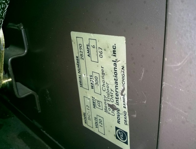 Description: 1 each Rowe dollar bill vending change machine.