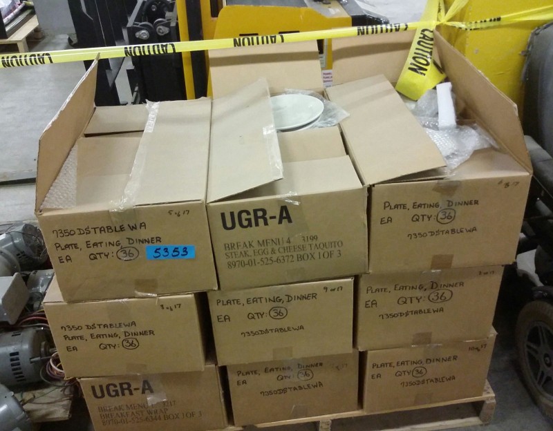 Description: 1 each pallet consisting of 9 each boxes of dinner plates.