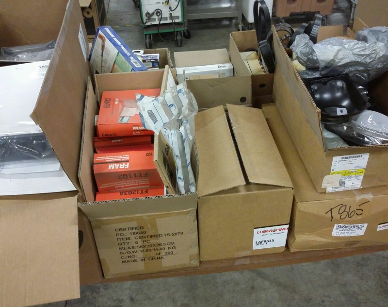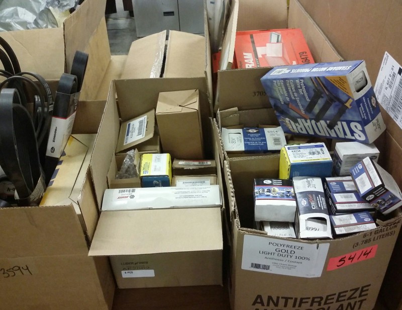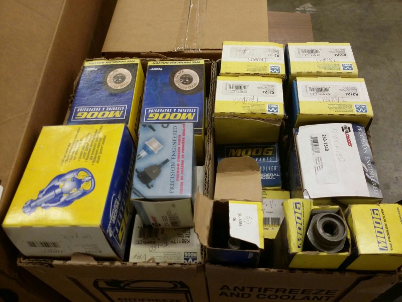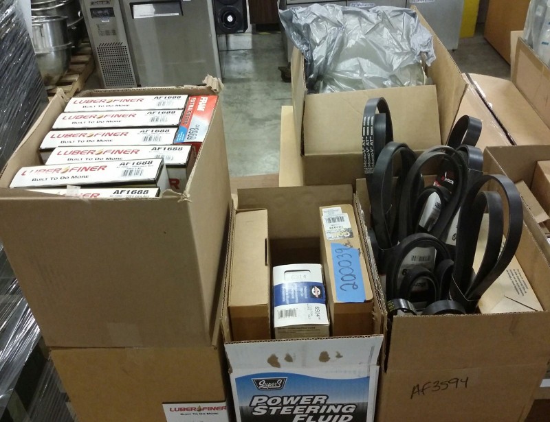 Description: 1 each table lot consisting of miscellaneous auto parts. The table isn't included in this lot.