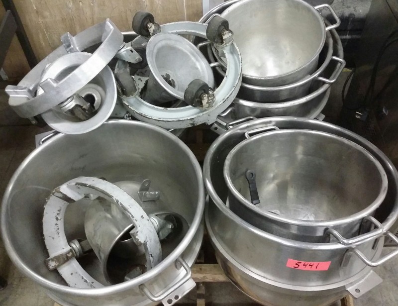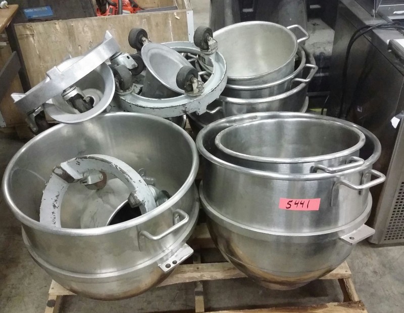 Description: 1 each pallet consisting of commercial mixing bowls with rolling stands.
