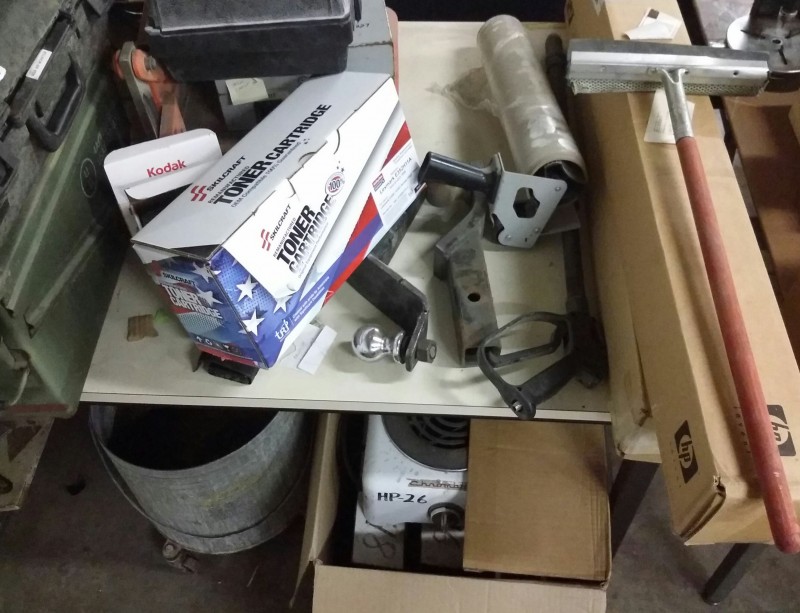 Description: 1 each table lot consisting of miscellaneous items. The table isn't included in this lot.