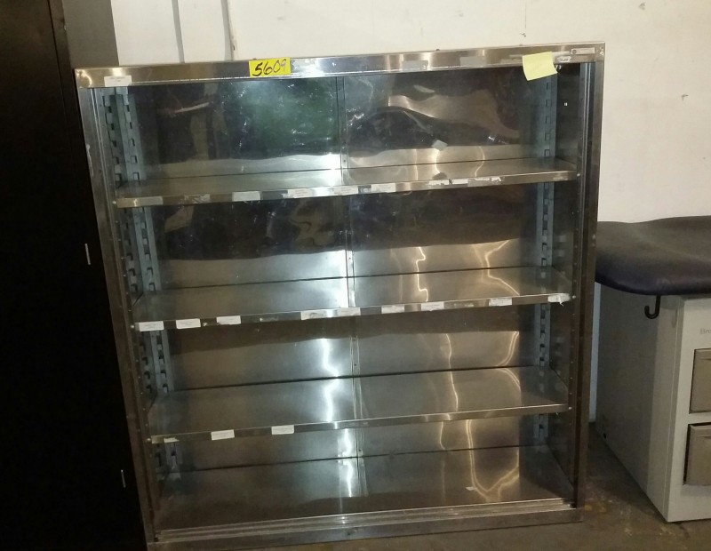 Description: 1 each stainless steel bookshelf.